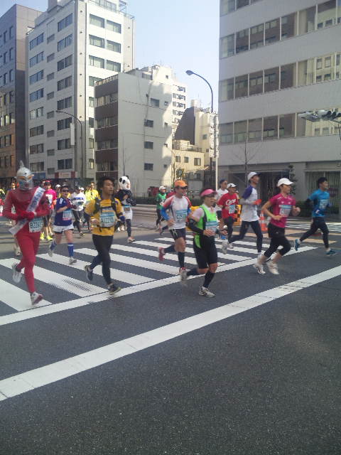 東京マラソンで撮った写真を見ていたらウルトラマンセブンを発見!これで走るのは大変そうだ。完走したのかな?