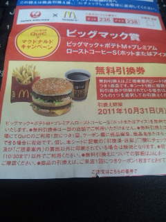食べに行かなきゃ~。当たったのを忘れていた。マクドナルドなんて一年に一度食べるか食べないかくらいだ。久々に食べたらおいしそうだな~